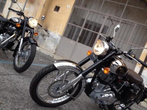 Le Royal attirano tutta l’attenzione dei passanti durante il giro turistico e ci accorgiamo degli sguardi perchè lo stesso effetto emotivo lo si vive a bordo di queste motociclette. Le linee classiche delle Bullet si sposano alla perfezione con la buona fattura dei componenti, gradevoli nel disegno e affidabili nei materiali, molto più di quanto si possa pensare durante il primo approccio con le moto……Lo stile delle Bullet resta fedele e coerente ai concetti che da 125 anni hanno caratterizzato i gusti e le tendenze di questo marchio. Royal Enfield nasce infatti in Gran Betragna nel 1890 e nel 1955 la produzione viene spostata in India dopo una nuova acquisizione, mentre la Bullet è conosciuta come la serie più longeva nel settore motociclistico. Royal Enfield ha saputo resistere alle innumerevoli crisi del settore ma ha sempre trovato la forza e la passione per rinascere. E noi ora siamo qui a distanza di più di un secolo a gustarne tutti gli aspetti e le sensazioni di guida che questa moto sanno offrire…….
