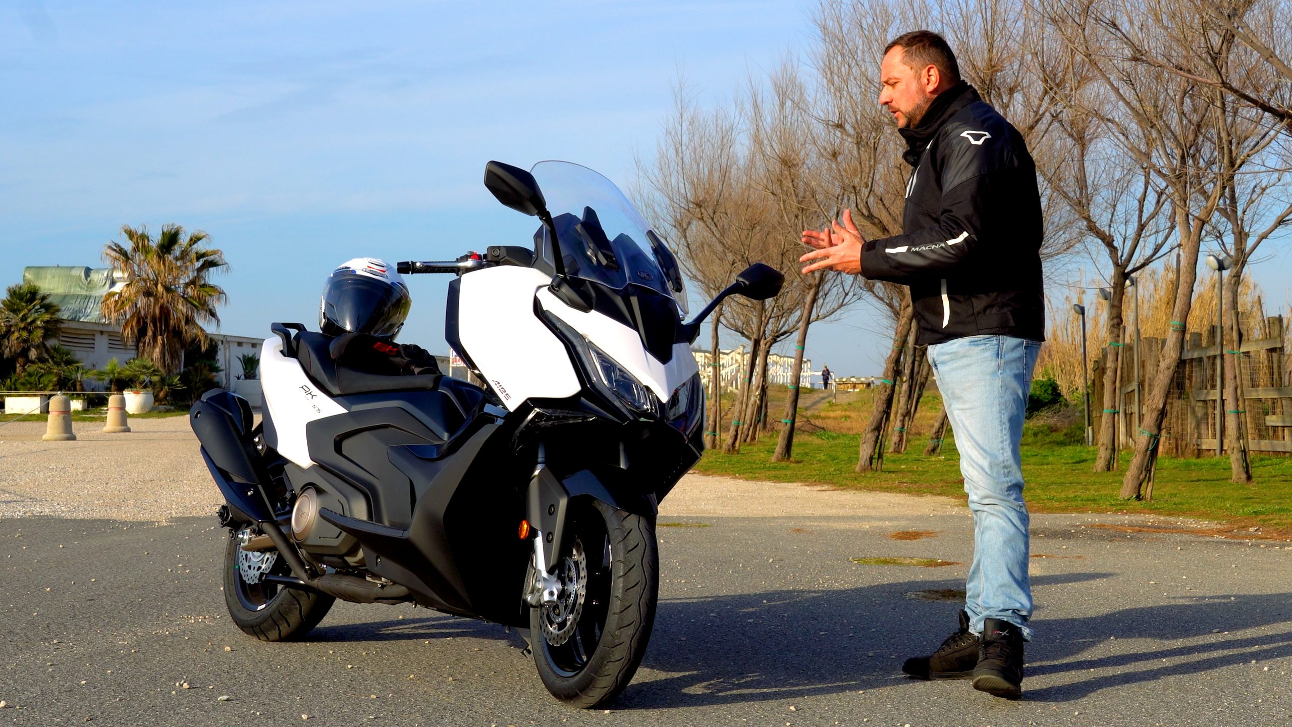 Dopo la versione AK 550 Premium KYMCO decide di fare di più e spinge il suo bicilindrico fino alla cubatura di 574 cc. Poca potenza in più ma buon incremento di coppia, con punti rafforzati del nuovo Kymco AK 575 Premium in ciclistica, sospensioni e freni. Affinata anche la dotazione elettronica. Una sfida aperta al leader del mercato Yamaha T-Max con costo che arriva a 11.990 euro fc ma COSTAGLIOLA MOTO che ci ha offerto lo scooter in prova, lo propone a 11.000 euro fc.